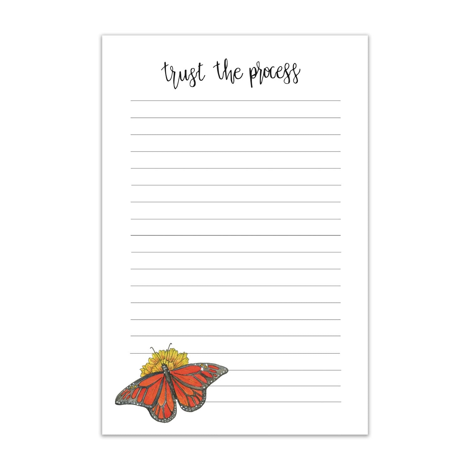 It's fun to make lists and cross off tasks with our new notepads! Introducing the Trust the Process Monarch Butterfly Notepad. This tear-off notepad is perfect for organizing your tasks, making grocery lists or even leaving a sweet note for your work bestie. Original artwork is handmade with pen and watercolor.
